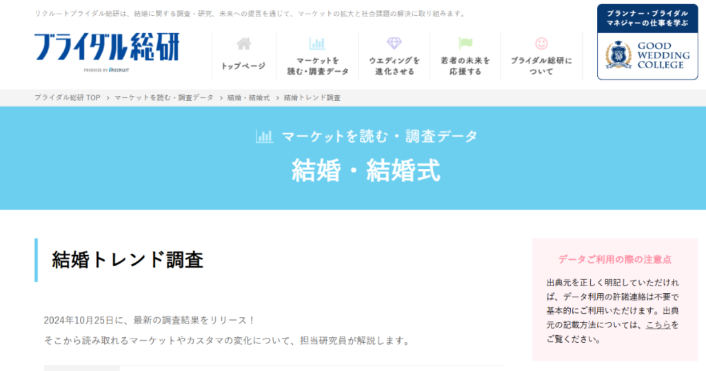 • リクルート社の「結婚トレンド調査」に毎年目を通す